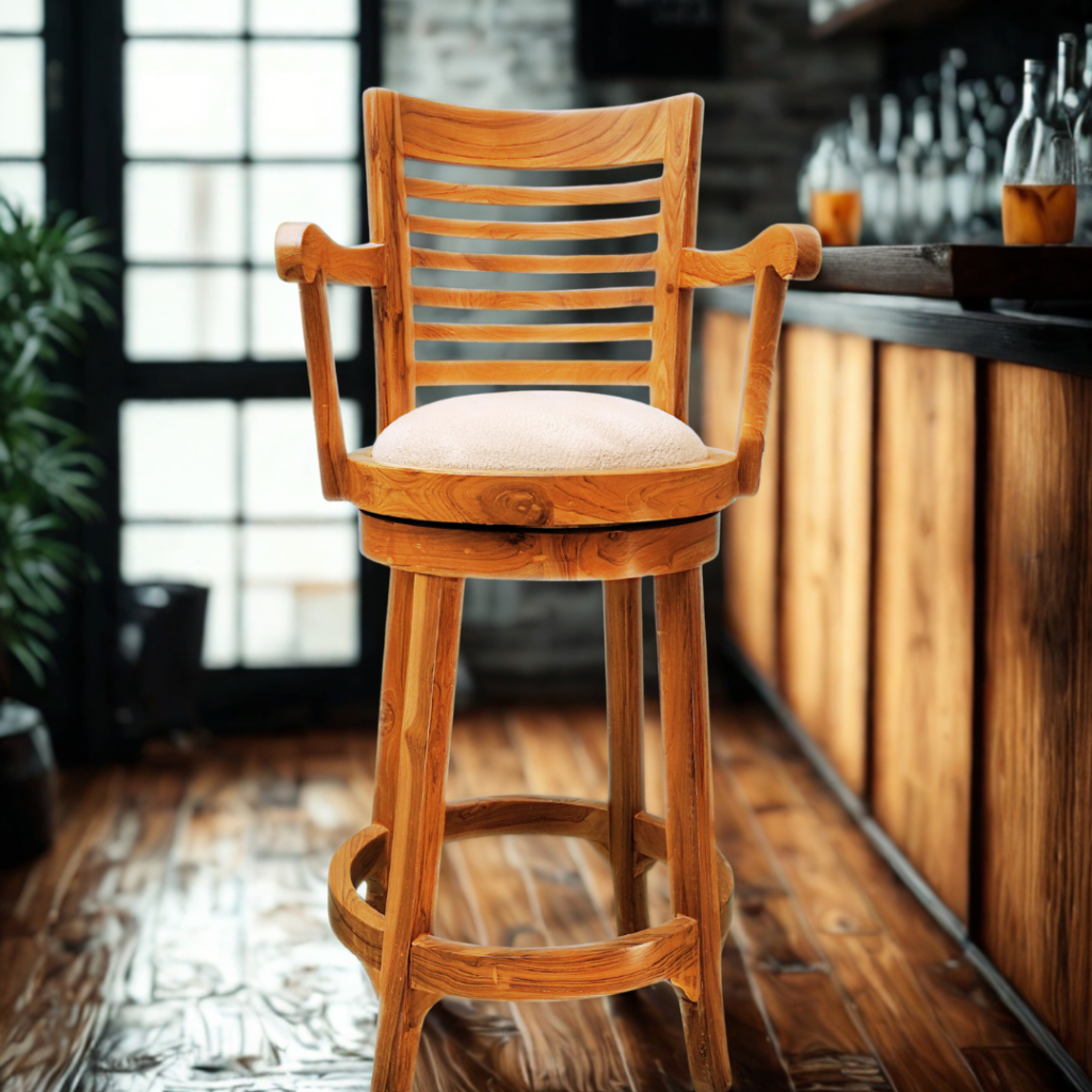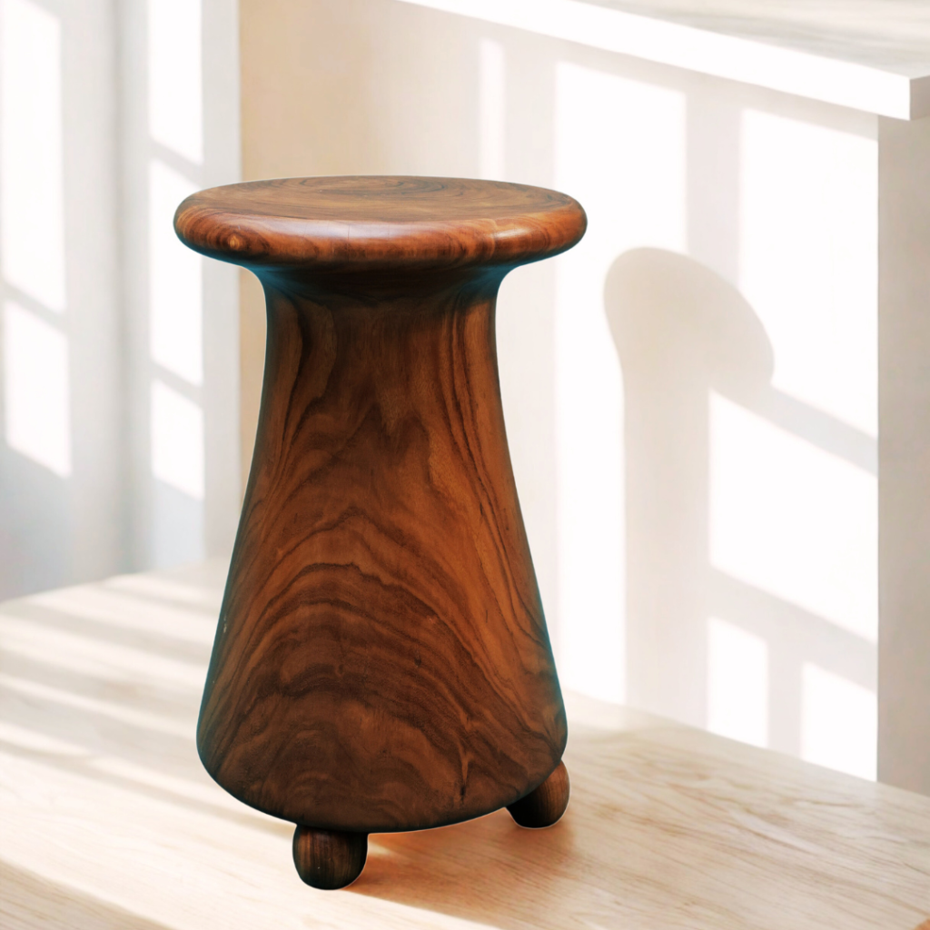 Beautifully crafted wooden stool featuring natural wood grain patterns and a rich finish that adds warmth and elegance to any home or office space